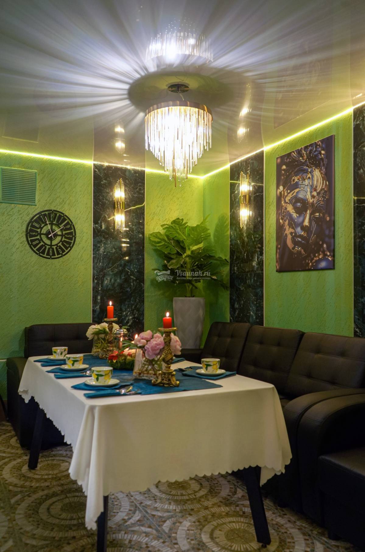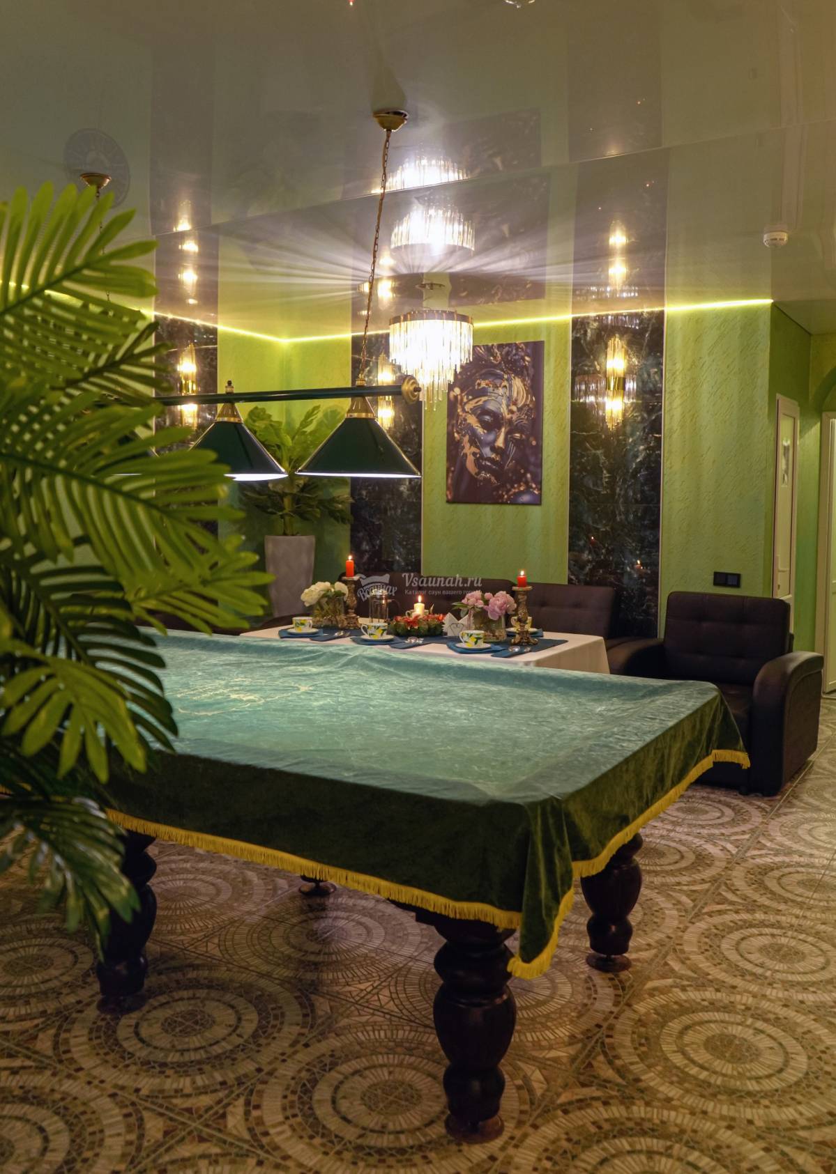 ( в стоимость зала входит 6 человек, спа -бассейн ( большая джакузи на 6 чел) , Теле-Аудио аппаратура, две комнаты отдыха, обеденная зона, бильярд)